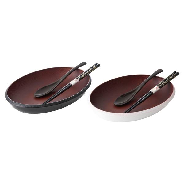 オーバルプレート/PET・ABS樹脂(ウレタン塗装/紀州塗)、スプーン/ポリプロピレン、箸/天然木(ポリエステル塗装)