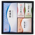 深蒸し茶50g・焼海苔(半切10枚)・味付海苔明太子風味(8切12枚)・紀州南高梅はちみつ漬け(3粒入〈塩分約8%〉)各1
