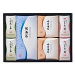 深蒸し茶50g・味付海苔明太子風味(8切12枚)・紀州南高梅はちみつ漬け(3粒入〈塩分約8%〉)各2、焼海苔(半切10枚)×1