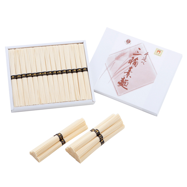 素麺発祥の地、三輪地方で昔からの伝統の技法を受け継ぎ丹念に作った手延べ素麺を蔵で熟成させました。