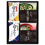 白子のり味付のり(8切5枚)・白子だし塩のり(8切5枚)各2、永谷園お茶づけ海苔(5袋入)・永谷園お吸いもの松茸風味(6袋入)各1