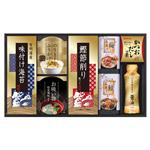 有明海産味付け海苔(3切4枚)・のり玉子ふりかけ(2袋入)・永谷園お吸いもの松茸風味(4袋入)・鰹節削り(4袋入)・梅茶漬け(2袋入)・鮭茶漬け(2袋入)・マルトモかつおだしの素(4袋入)・伊賀越天然醸造しょうゆ200mL各1