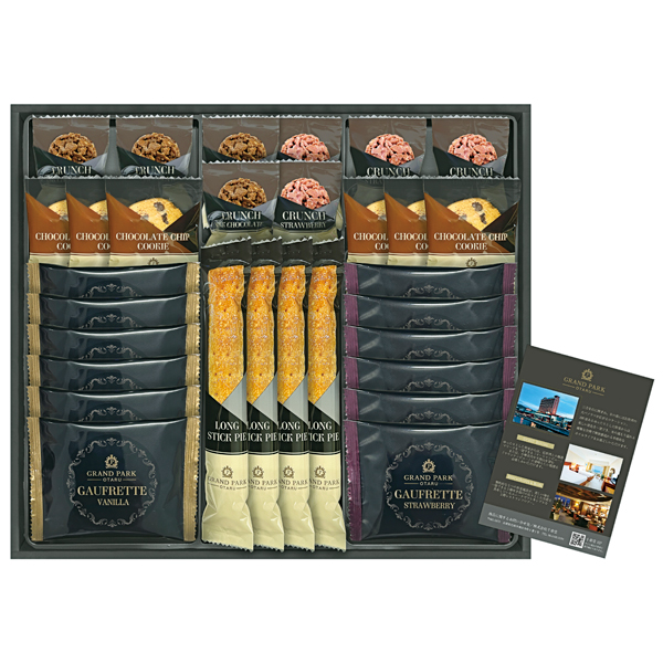 ロングスティックパイ×4・ゴーフレット(バニラ・ストロベリー)各6・チョコクランチ(ミルク・ストロベリー)各4・チョコチップクッキー×6 【卵・乳成分・小麦】