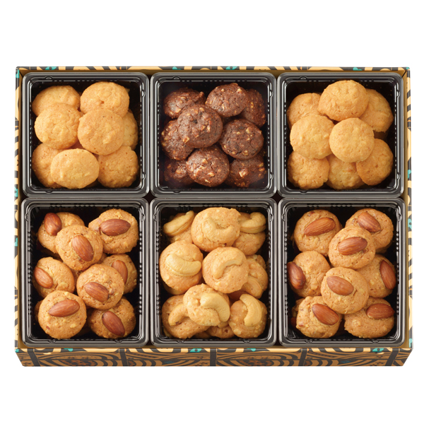 厳選したナッツを卵白仕立ての生地にたっぷり練り込んでカリッと香ばしく焼き上げました。