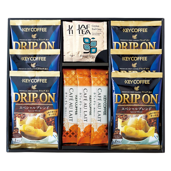 ドリップオンスペシャルブレンド8g×6、カフェオレ7g×3、セイロンアールグレイティーバッグ2g×2