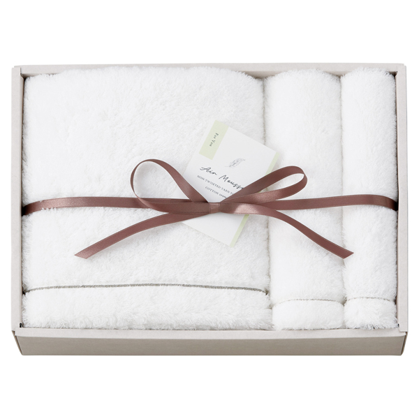 バスタオル(約60×120cm)・フェイスタオル(約34×80cm)・ウォッシュタオル(約34×35cm)各1・中国製