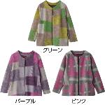 かすり調裏ボアニットジャケット M~L