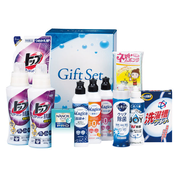 ライオントップクリアリキッド抗菌450g×2、ライオントップクリアリキッド抗菌詰替用350g・P&G除菌ジョイコンパクト170mL・ライオンCHARMY Magica除菌+220mL・ライオンCHARMY Magica酵素+オレンジの香り220mL・ライオンCHARMY Magica酵素+フレッシュピーチの香り220mL・花王キュキュット(クリア除菌)220mL・ライオンNANOX one PRO(10g×2袋)・洗濯槽クリーナー(5錠箱入)・ネットスポンジ各1・ネットスポンジ/中国製、その他/日本製