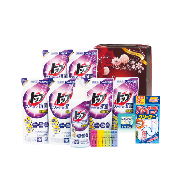 トップクリアリキッド抗菌(本体450g・詰替350g×6)・NANOX one PRO(10g×2袋)・カラフルピンチ8P・パイプクリーナー(3袋入)