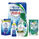 生乾き臭・カビ臭にWで効く部屋干し用のアリエールジェルと本格消臭の抗菌部屋干しソフター、食器洗剤除菌キッチンジェルが入ったクリーンギフトです。